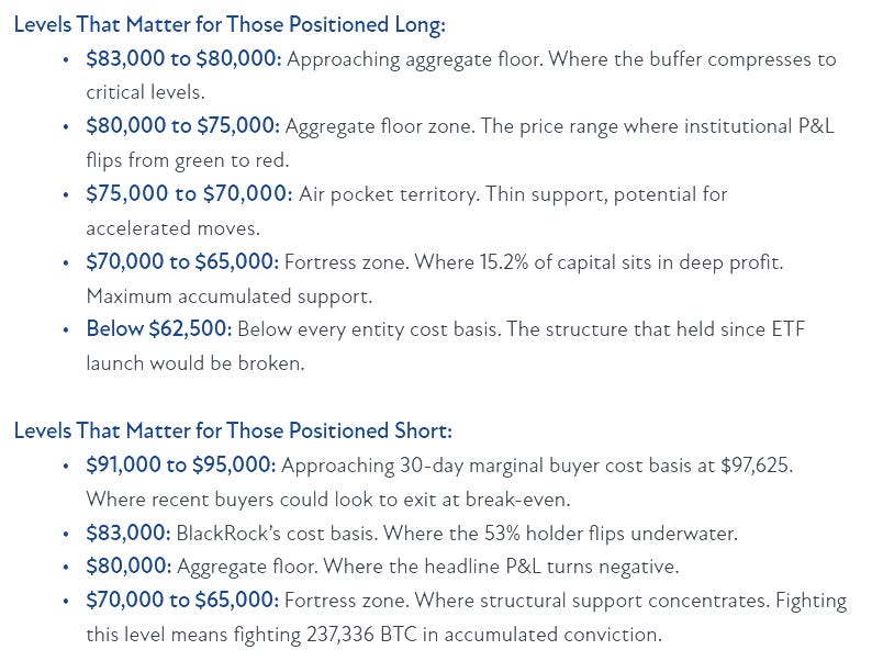 The takeaway from this report is ETF structure remains stable, but its protective buffer has thinned. The vulnerability lies in the combination of compressed cost basis distance and the exposure of recent buyers, whose average cost is ~$115,000 and currently sits materially underwater. The transition from stability to stress will be marked by a shift in whether the market trades closer to key cost-basis thresholds and positioning becomes more sensitive to downside volatility. The coming weeks will hinge on whether flows continue to reflect healthy rotation or begin migrating toward distress.