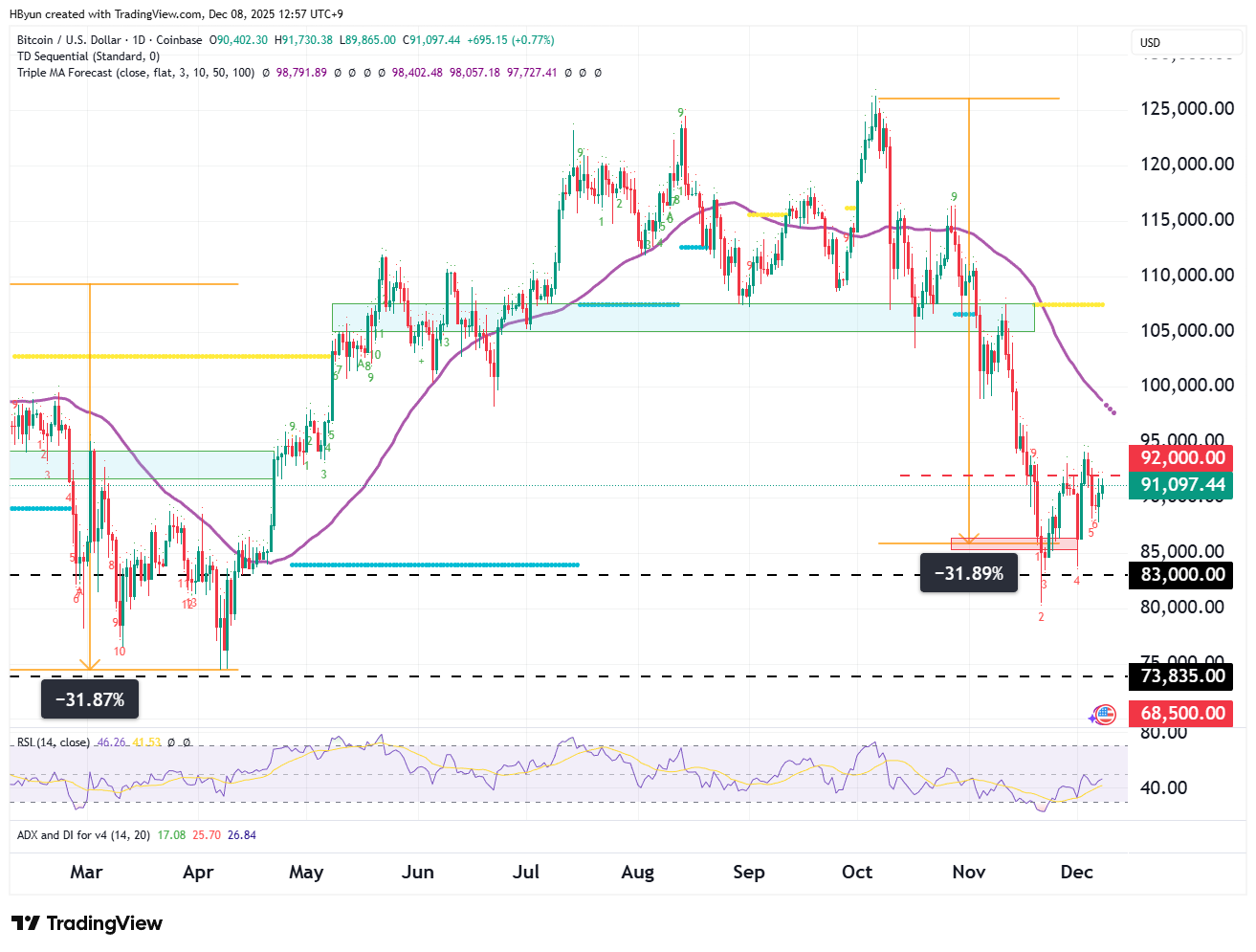 If the Fed unveils a dovish outlook, prices will likely grind higher, but we’ll need to see the reaction to the aforementioned resistance levels laid out. If the 95-100k level serves as resistance, it implies at best a retest of the $83-85k region and at worst, a possible lower low in the near future.