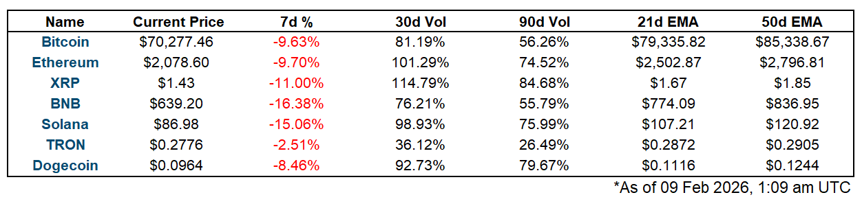 At the same time, Bitcoin remains below multiple prior support zones that have now become resistance, particularly the $83,000 and $92,000 levels, which defined the previous trading range. Until those levels are reclaimed, the broader trend should be viewed as corrective rather than bullish.
