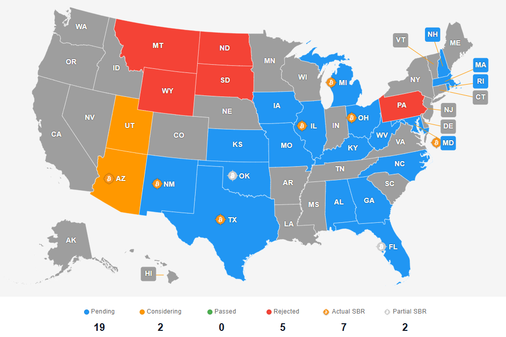Proposal: Would allow the state treasury and public retirement systems to allocate up to 10% of reserve funds into Bitcoin.